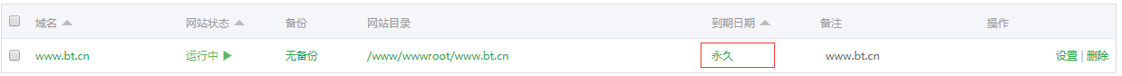 也就说,如果您只是使用宝塔面板管理自己的站点,那么完全可以忽略站点有效期这个功能。理论上,默认值都应该设置为永久。