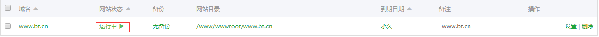 - 网站状态:显示当前网站的运行状态,点击当前站点运行状态,可以停用当前站点。