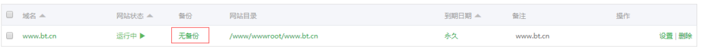 - 备份:显示当前站点的备份状态,点击当前站点备份状态,可以查看和备份当前站点信息