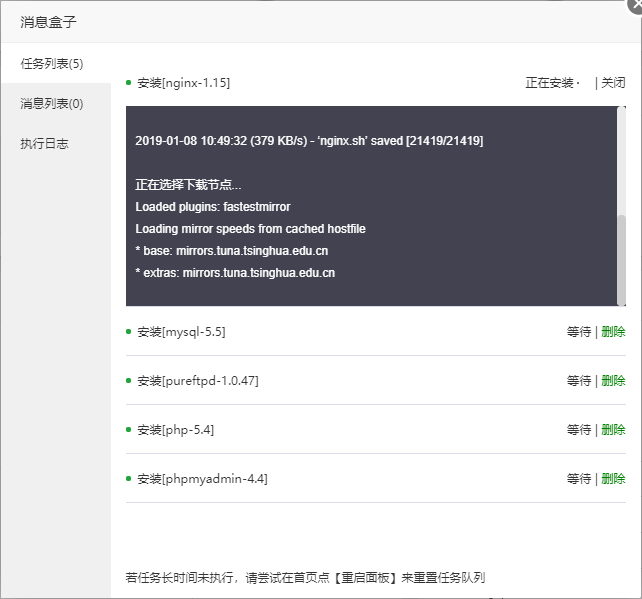 注:如果你搭建的服务器环境对Nginx、Apache、Mysql和PHP版本有一定的要求,这个步骤可以根据自身实际情况更改版本。理论上编译安装会比极速安装靠谱些,不过安装时长可能会久一些。