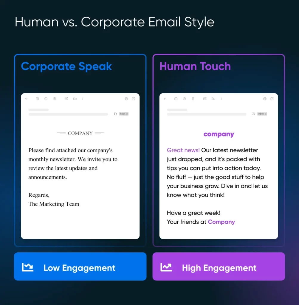- 人性化您的电子邮件副本:即使您依赖人工智能工具,也要审阅定稿,确保它听起来像一次真实的对话。