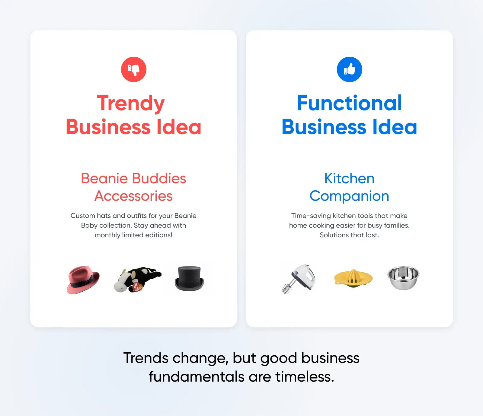 在创业之初,追赶最新潮流是很有诱惑力的。毕竟,谁想错过下一波“必备”产品的大潮呢?但是,追赶潮流很快就会适得其反。当你推出新产品时,市场可能已经转移了。相反,您应该瞄准一个持久的问题或需求,让人们的生活变得更轻松。