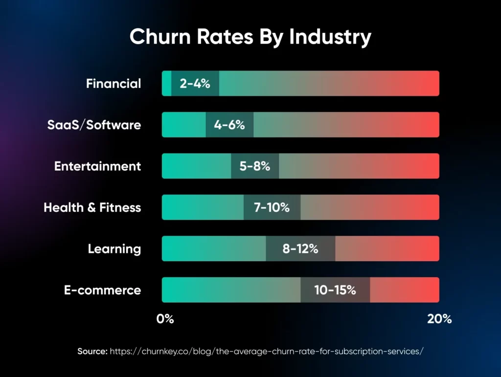 健康的客户流失率是什么样的?以下是 Churnkey 提供的一些基准。