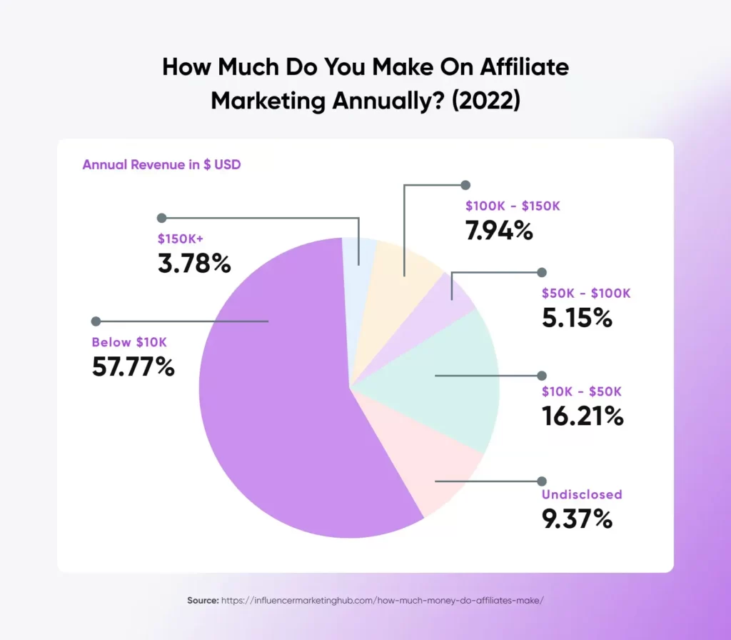 事实上,《2022 年联盟营销基准报告》发现,绝大多数联盟营销人员通过这种方法获得的年收入低于 10,000 美元。
