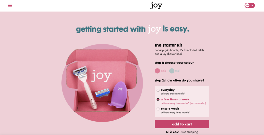 - Joy 简单直接地向客户展示如何快速获取产品套件,选择颜色和配送方式,就那么简单。