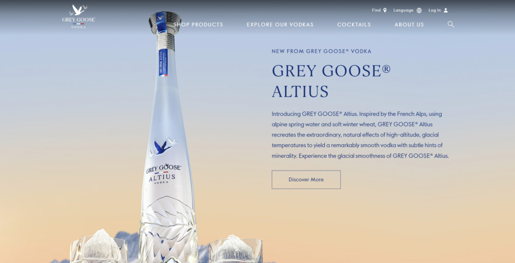 - Grey Goose 邀请访问者“Discover More”。这个 CTA 使用动词呼吁读者行动起来。