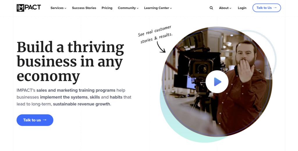 - Impact 没有催促人们立即购买其服务,而是建议访客与他们交谈(Talk to us)。