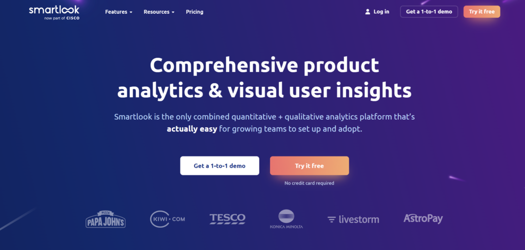 - 访客可以获得一对一演示或免费试用,而不是立即购买 Smartlook。