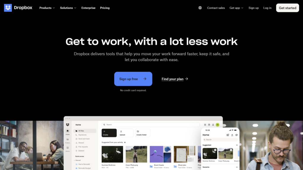 - Sign up free 和 Find your plan 两个 CTA 暗示,Dropbox 不仅可以免费注册,还为不同的使用情况提供了多种订阅选项。
