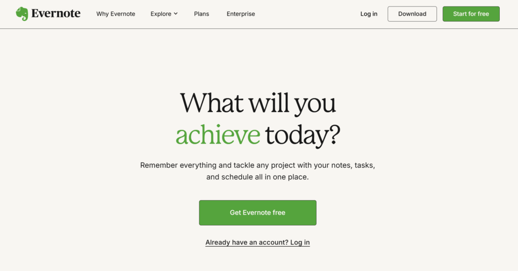 - 与本列表中的其他选项一样,Evernote 提示用户免费试用其产品。
