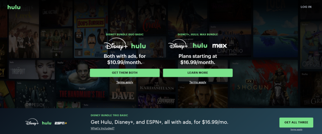- 人们通常不会只想要一种流媒体服务。为了吸引这部分受众,Hulu 宣传其与 Disney+ 和 ESPN 的捆绑计划。