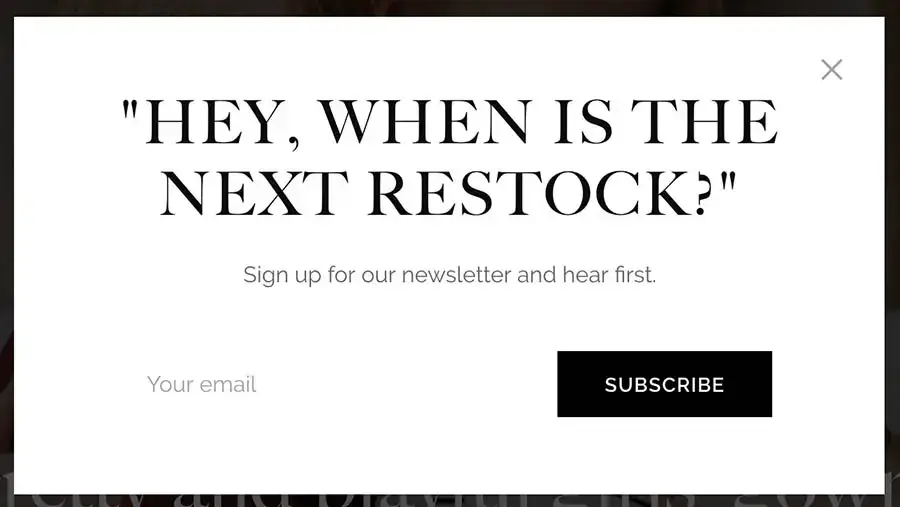 如果您想锁定那些已经开始关注您品牌的用户呢?在这种情况下,您可以提示他们注册您的月度电子期刊并接收补货提醒:
