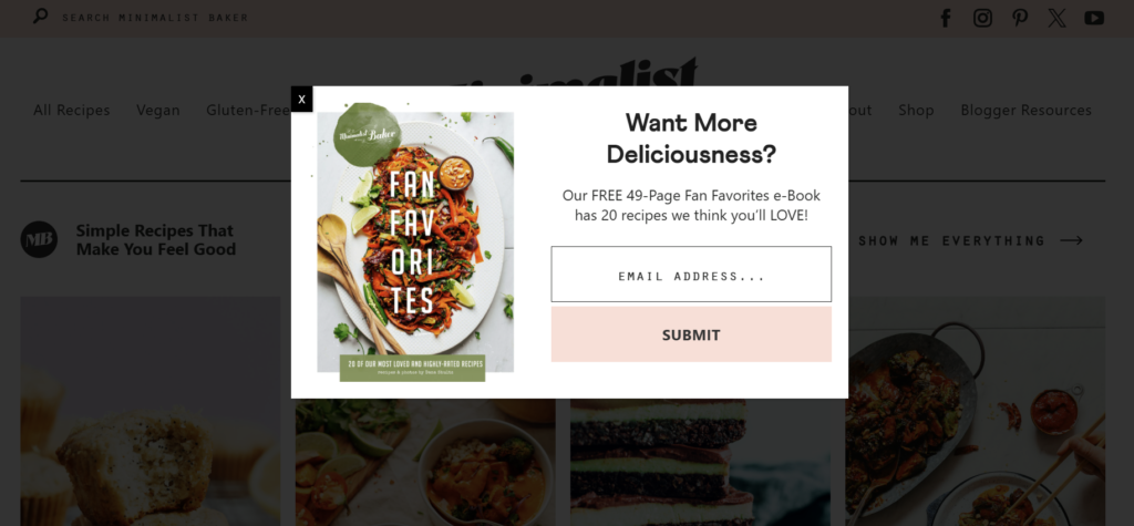 要制作出引人注目的 CTA,您需要确定您希望哪些群体对您的信息采取行动。由于您可能希望每个群体做不同的事情,因此您需要相应地定制信息。例如,Minimalist Baker 美食博客为新访客提供免费的独家菜谱电子书: