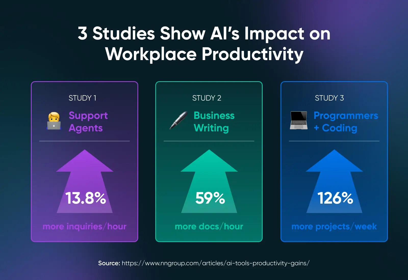 不服气?尼尔森最近对三项独立研究进行了分析,发现使用人工智能开展业务的人提高了 66% 的工作效率。