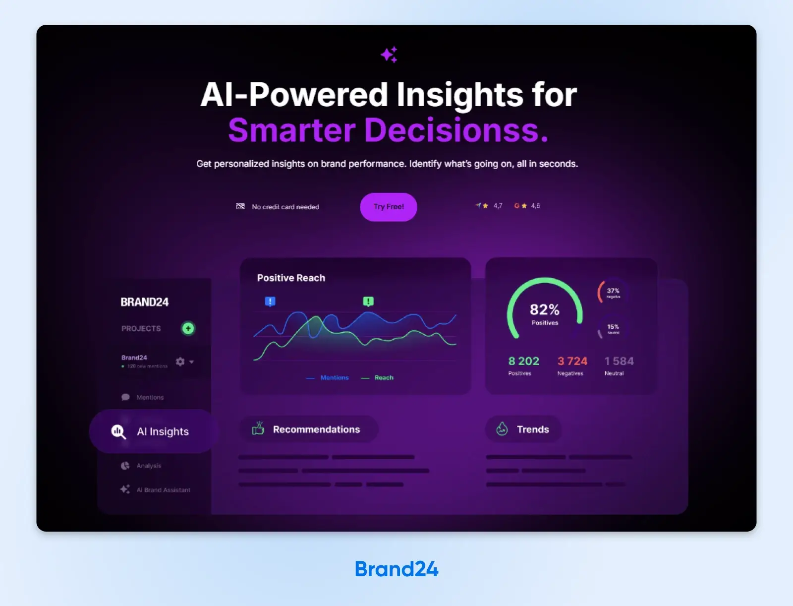 同时,Brand24 利用人工智能分析人们在网上对你的企业的评价。这对于弄清大多数人对你的品牌的看法确实很有帮助。