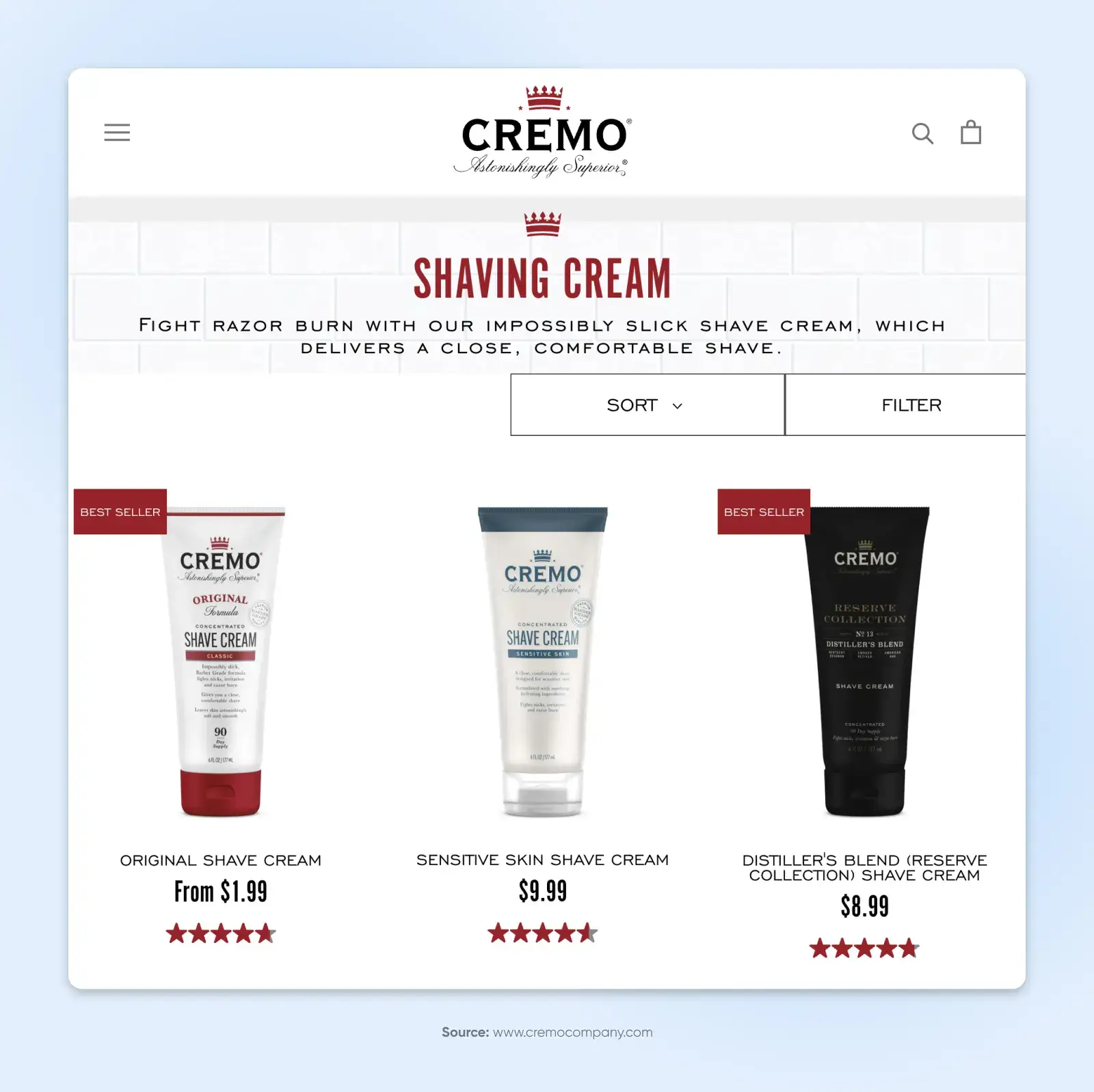 以 Cremo Shave Cream 为例。在访问其剃须膏产品的登陆页面时,可以清楚地看到他们最大限度地使用了剃须膏、剃须膏和剃须等关键词。