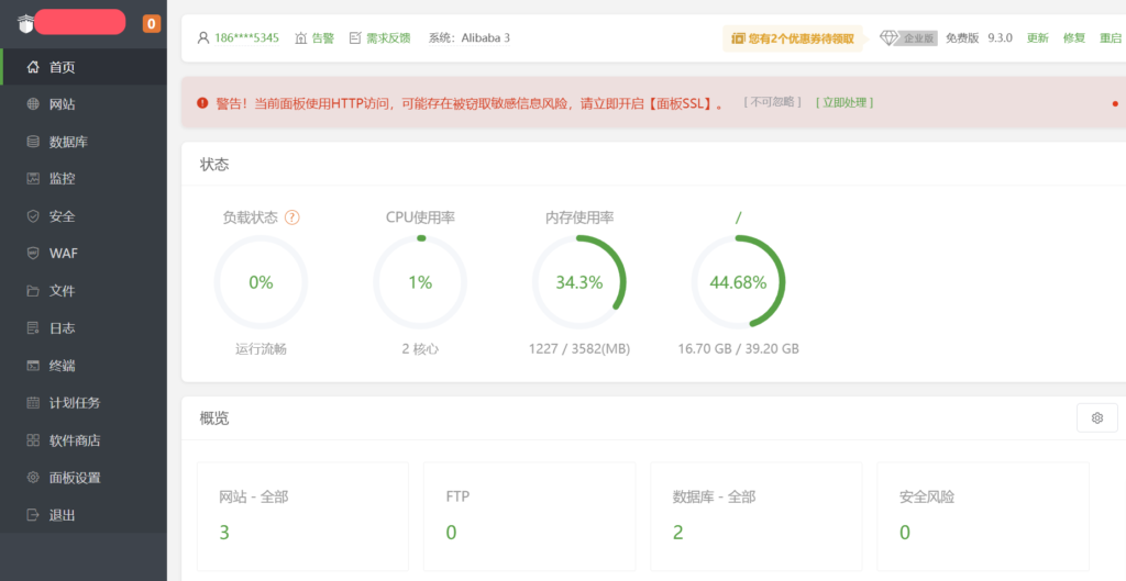 如果您们属于小团队,并无法通过专业的技术团队管理服务器,我们建议您使用宝塔面板之类的工具管理服务器资源。宝塔能够提供一系列的功能旨在节省时间、减轻压力,并让您的团队专注于您最擅长的工作。