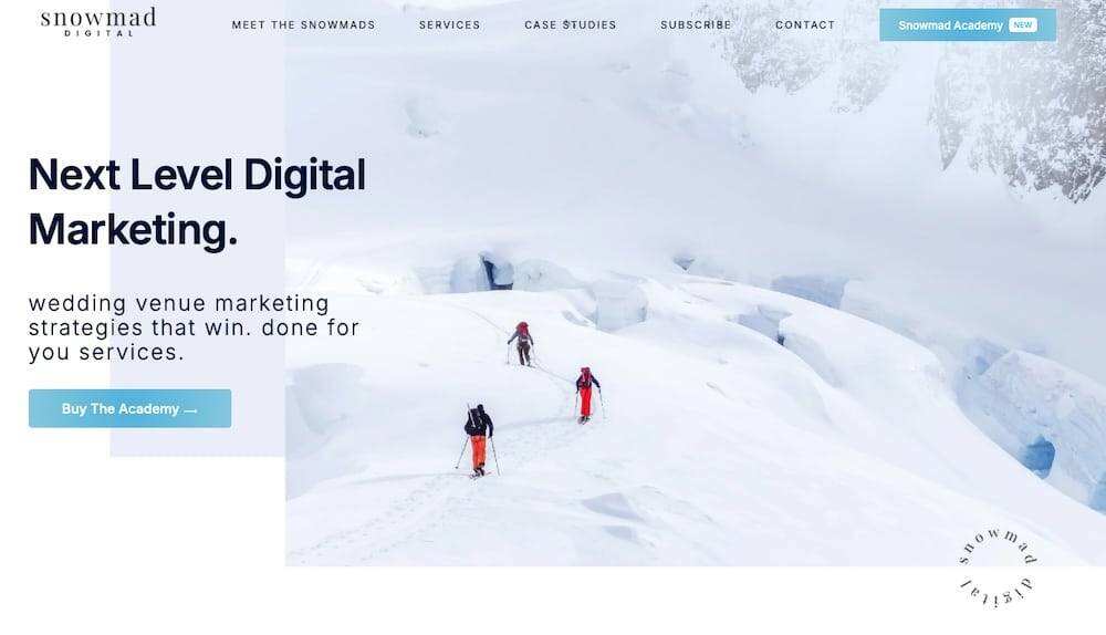 通过将责任分配给具备专业技能的团队,合作伙伴关系还能帮助机构简化运营。Snowmad Digital 在这方面做得很好。该公司专注于婚礼场地行业,专注于提供卓越的网页设计和数字营销服务。