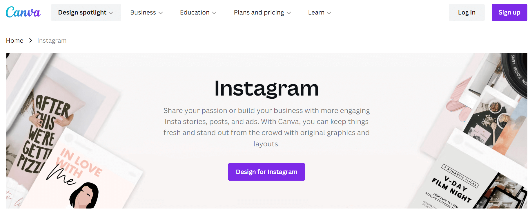 Canva 自带拖放编辑器,因此您可以快速整理出有吸引力的帖子。它还包含所有主要平台的社交媒体指南,帮助你创建更具吸引力的内容。