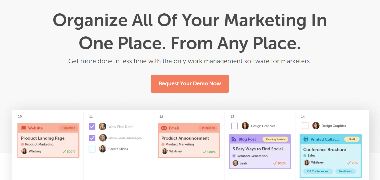 CoSchedule 采用可视化布局,便于您组织营销材料。它还可以自动安排发布日程,并将创意资产存档,加快工作流程。