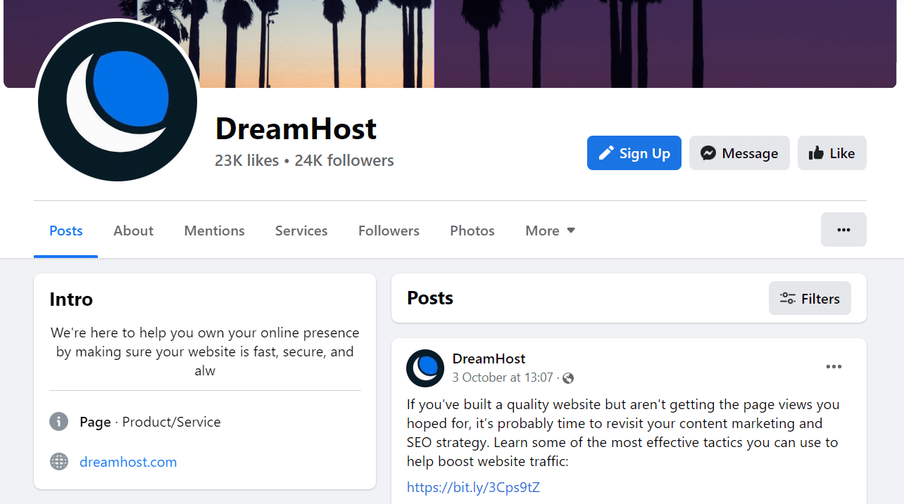 许多社交媒体平台都允许您在个人资料的显著位置链接到您的博客或网站: