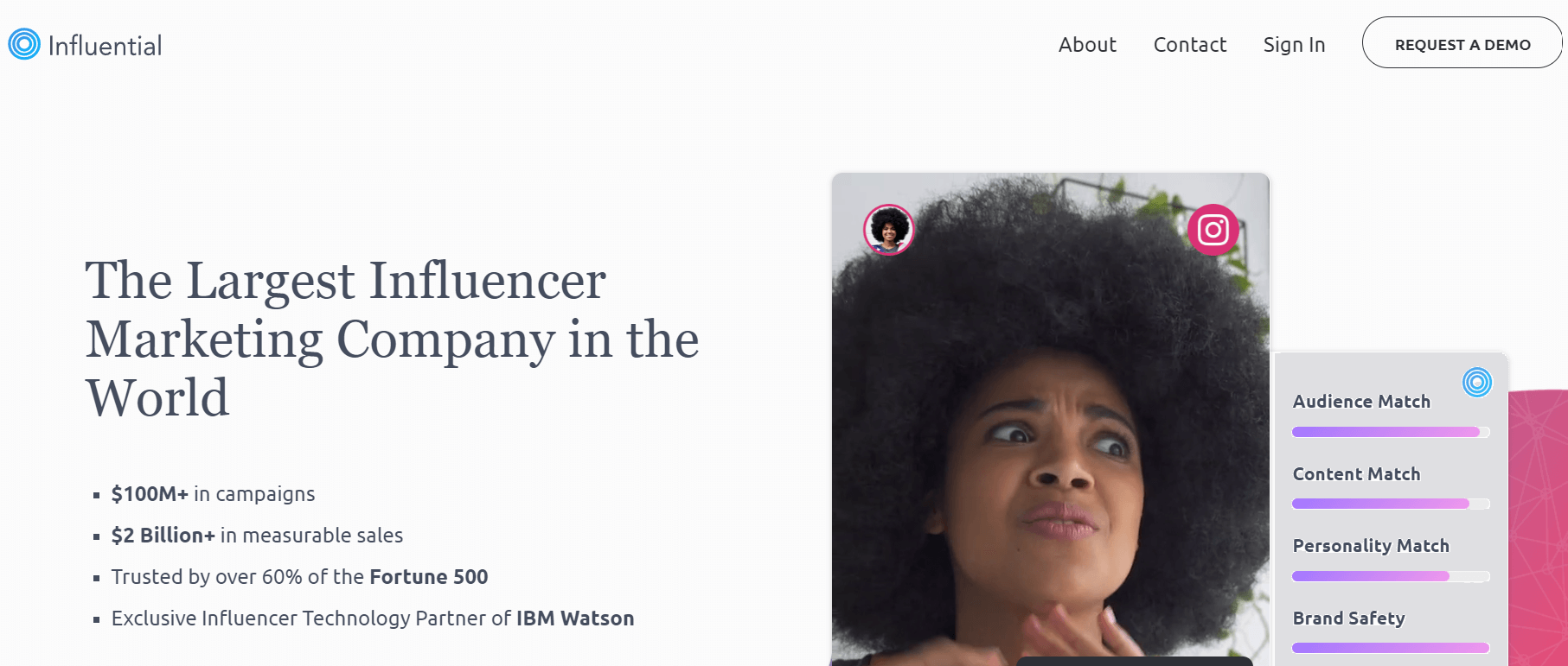 Influential 利用机器学习和透明数据来确定哪些影响者与您的业务最相关。因此,它可以快速简化寻找社交媒体明星的过程。