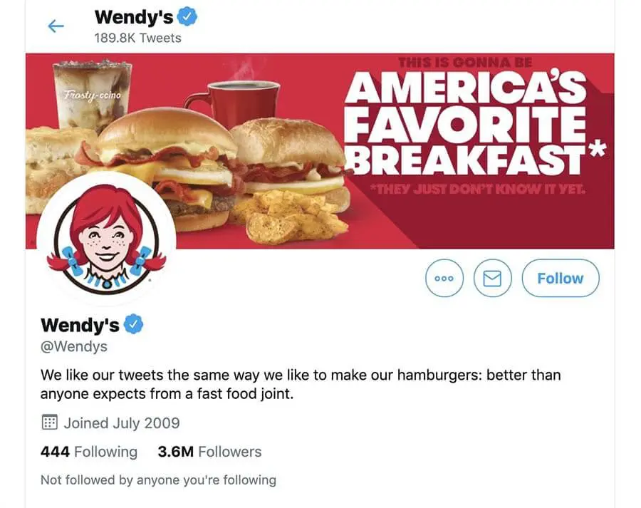 以 Wendy’s 为例。该品牌在社交媒体上以诙谐的推文和讽刺性的回复而闻名: