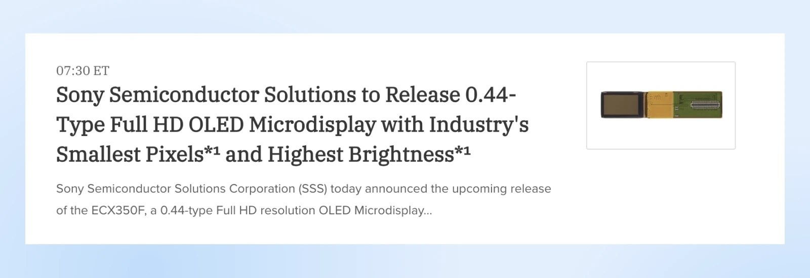 下面是索尼公司最近发布的新闻稿中的一个好标题示例。