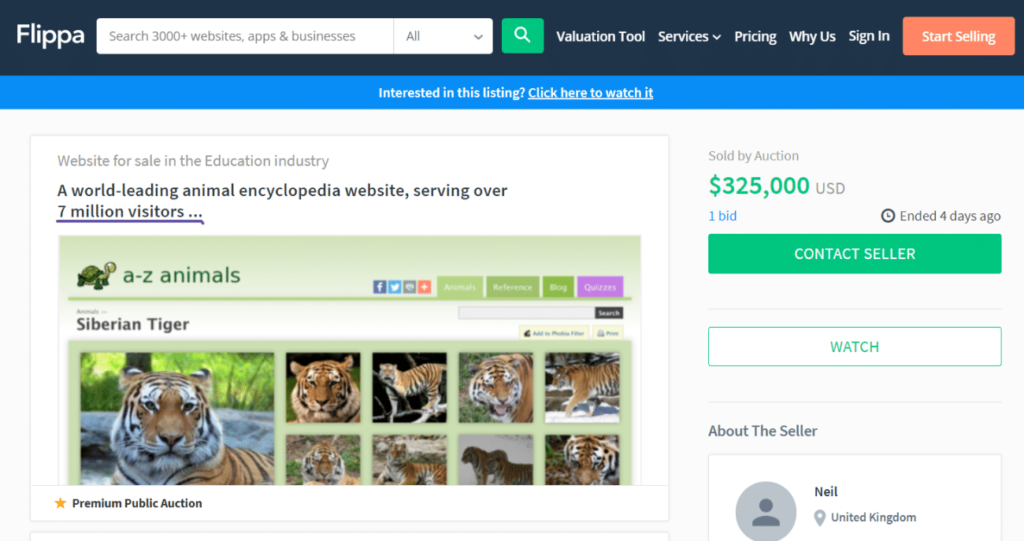 Flippa 是唯一一个可查看最近售出网站目录的网站。您可以访问这些网站寻找灵感,并将最终价格与您的出价进行比较。