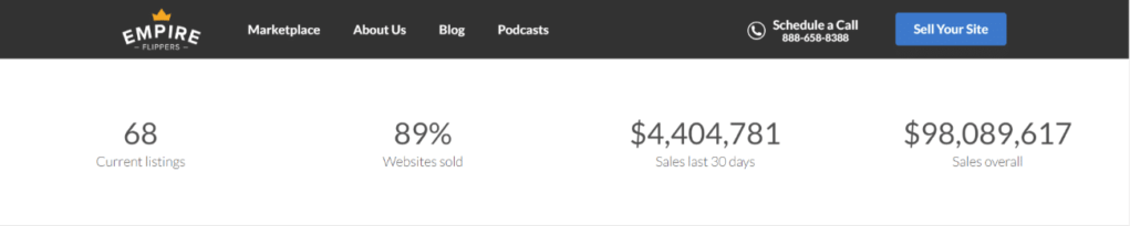 Empire Flippers 是一家网站经纪人公司,主要经营各种规模的在线业务。挂牌的最低要求是每月净利润 1000 美元。