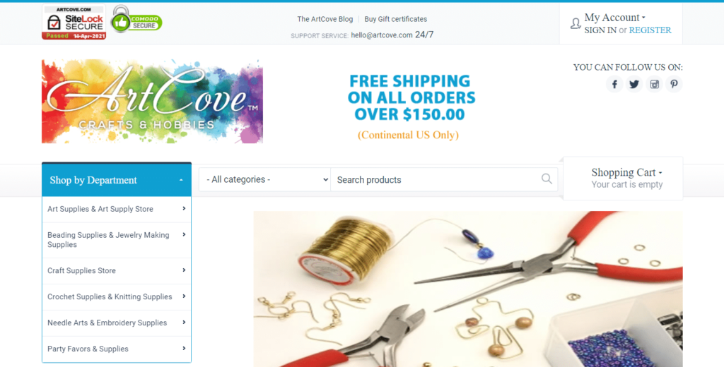 ArtCove 还在社交媒体上树立了良好的形象。他们的 Facebook、Instagram、Twitter 和 Pinterest 账户经常更新,并经过精心策划,以吸引艺术家和手工艺者。