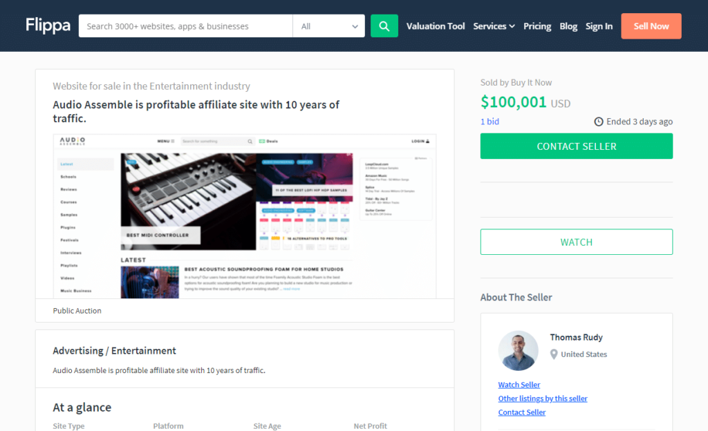 另一个内容网站 Audio Assemble 的售价为 100,001 美元,月收入约为 3,300 美元。该网站自称是 “为有抱负的音乐家和音频工程师提供的一站式音频工程学习中心”,其重点是通过从产品评论到学生资源等内容推动流量。