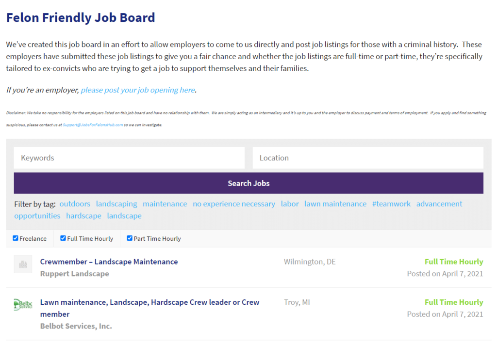 从域名上您可能已经猜到了,这家在线企业专注于帮助被判刑的重罪犯寻找工作-这种服务的需求量越来越大。它的重点是提供高质量的内容,帮助提升求职者的前景,并以求职板的形式提供一个搜索聚合平台,发布对重刑犯友好的职位列表。