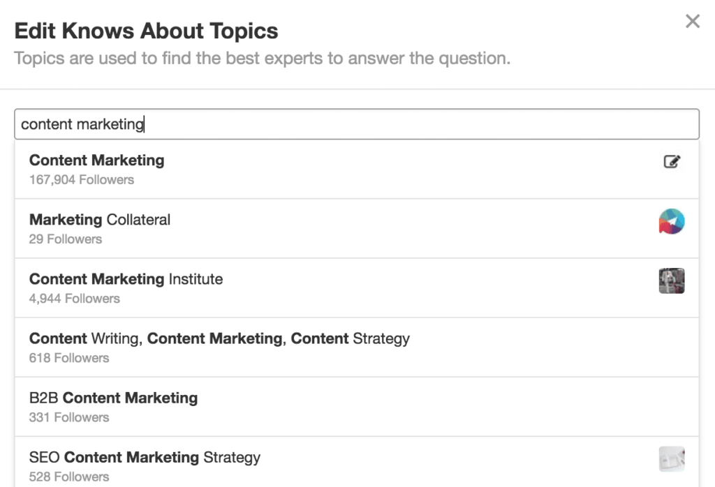 您在此处包含的主题还可以帮助您找到要回答的相关问题。编辑此部分时,您可以先搜索与您所在行业相关的关键词和主题。然后,您会看到有多少用户订阅了这些主题。