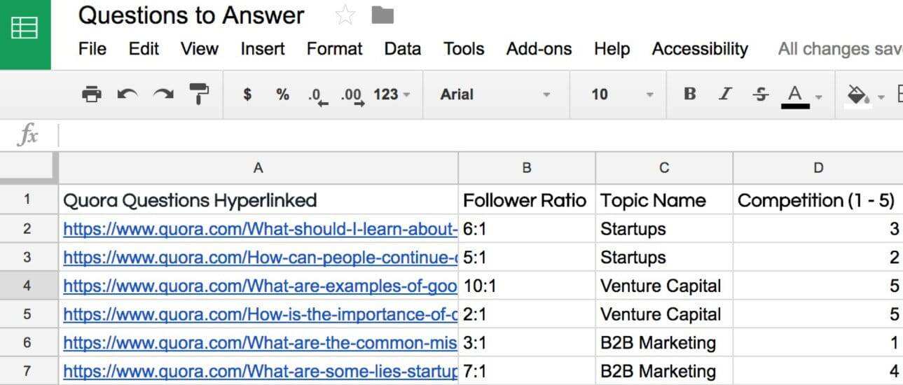 选择此选项后,问题将出现在 Quora 网站的 “Answer” 选项卡下。另外,如果您想跟踪与上述属性相关的其他信息,也可以像 Fetcher 一样,将问题保存在自定义电子表格中。