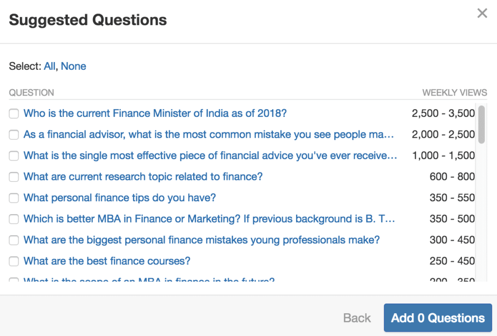 因此,假设您选择将其添加到 “Knows About” 版块。当您准备撰写答案时,您会看到与该主题直接相关的热门问题列表。