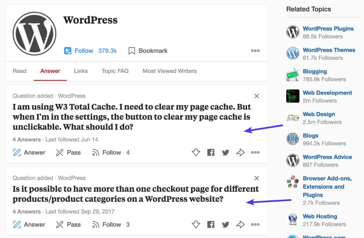 这样就很容易找到需要答案的问题。虽然您不一定要只关注有大量订阅者的主题,但在热门话题上撰写一些答案可以帮助您在网站上获得曝光率。