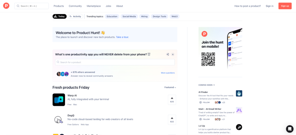 数以千计的产品发布时都会在该网站上展示。创始人可以免费注册,并为自己的产品创建一个列表。