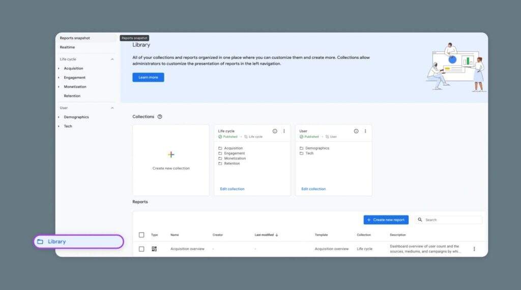 GA4报告选项卡是访问和分析GA4属性中数据的中心枢纽。