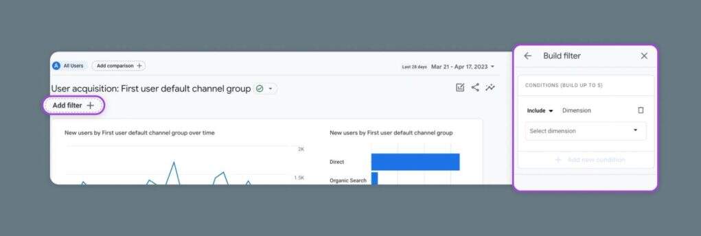 从这里,你可以根据多达5个维度创建一个自定义过滤条件。