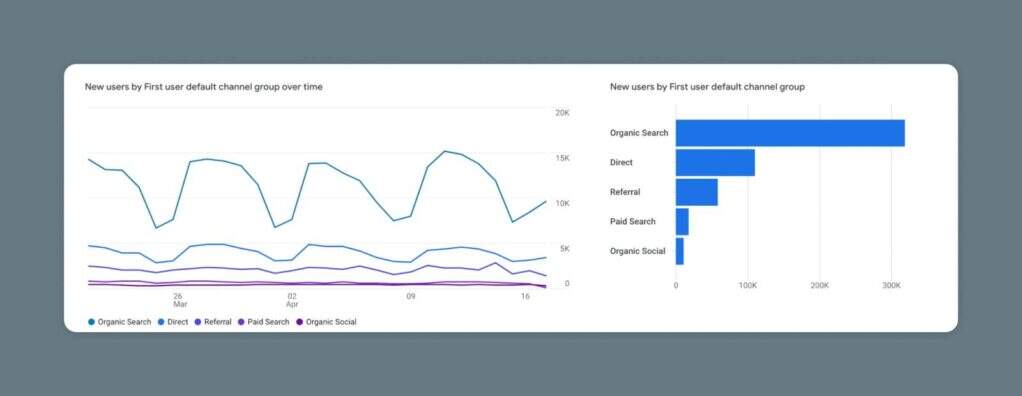 这份报告显示的数据与用户获取基本相同,但它没有经过过滤,只显示新用户。相反,它允许你看到将流量引向你的网站的来源或渠道–无论该用户是第一次访问还是第100次访问。
