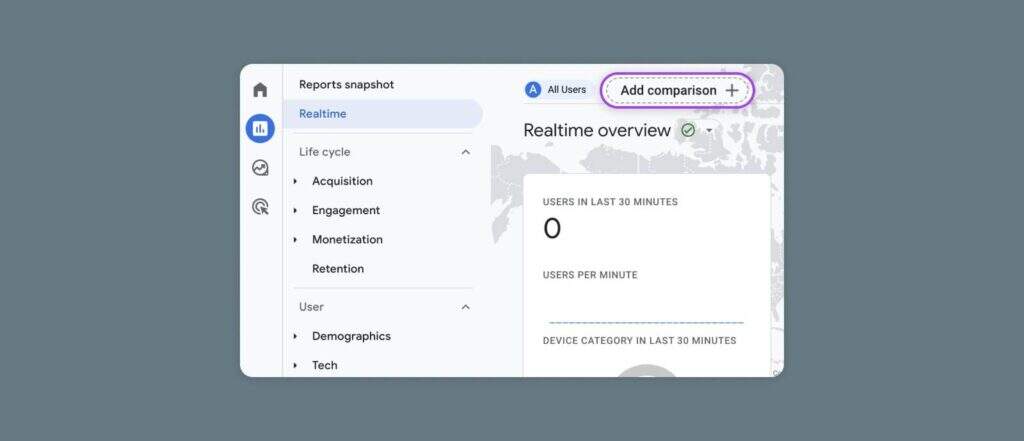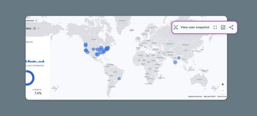 GA4中的实时报告屏幕并不是非常可定制的。你当然可以使用他们的比较和快照功能来挖掘数据–我们很快会告诉你如何做–但这是个性化的终点。