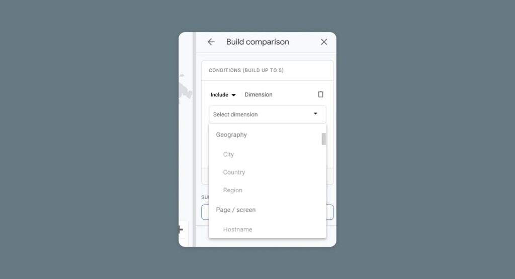 一个侧边栏将在右边滑出,你可以选择维度,如年龄、地区、设备、时间、流量来源等。你也将选择维度值。因此,如果选择的维度是平台,价值选项将包括Android、iOS和Web。