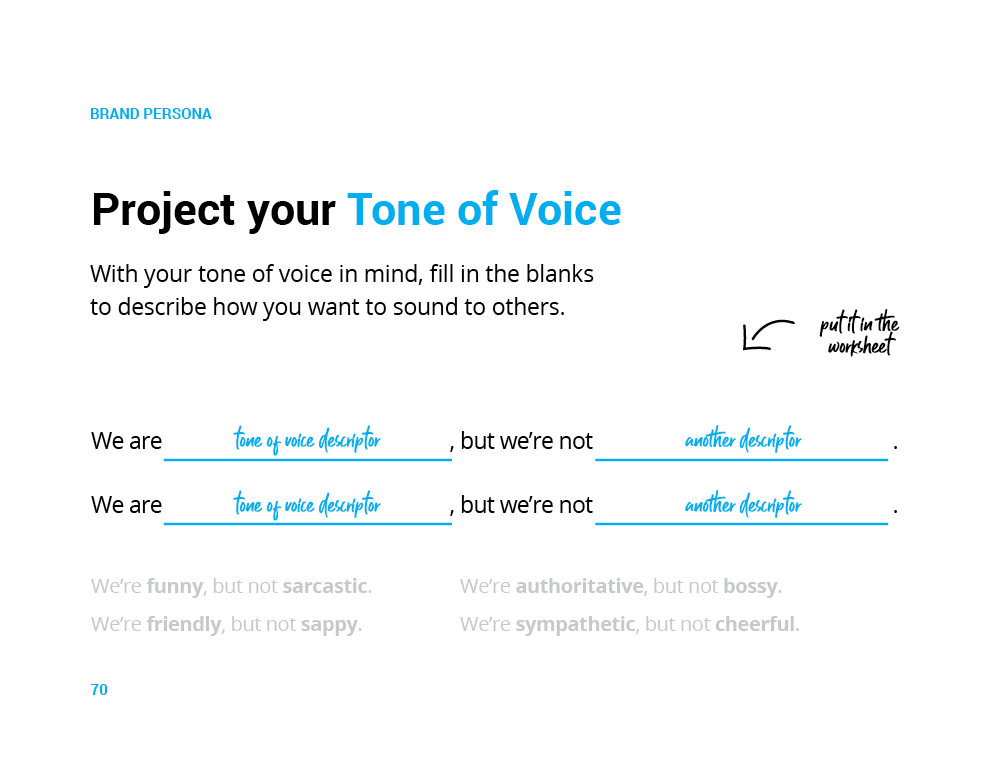 现在,什么是声音的语调?- 它基本上是指你的品牌个性如何通过你使用的词语表现出来。