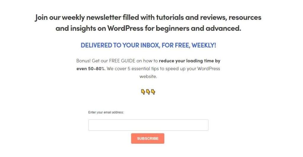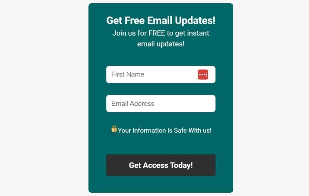 电子邮件注册表也是如此。它们可以是简单的,如上面的例子,也可以提供激励措施以增加注册人数。企业常用的一种策略是提供某种类型的赠品,如获得独家折扣,甚至是电子书。