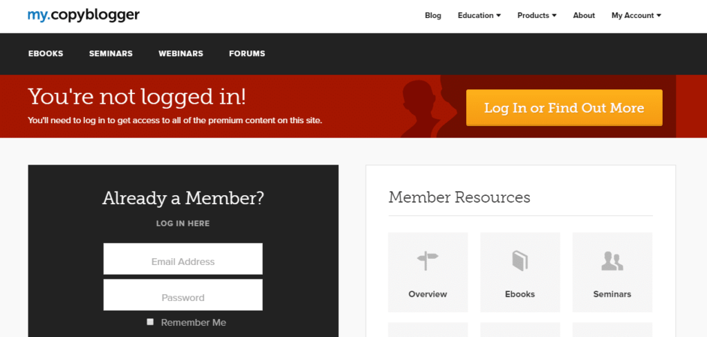 通常,这些内容包括网络研讨会、文章、播客和一个社区论坛。例如,Copyblogger的 “My Copyblogger” 就非常符合这个定义。