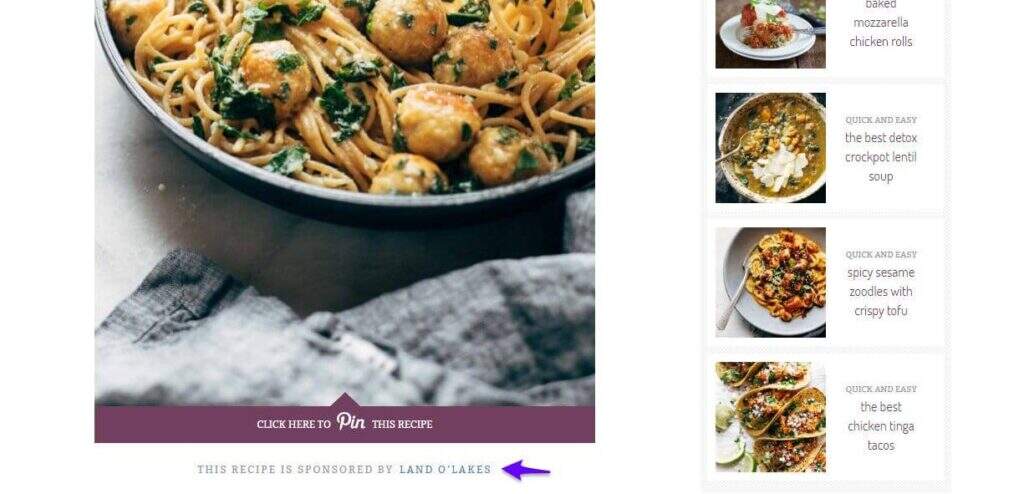 如果你跟随任何美食博客,你可能已经看到了一个赞助职位的行动。例如,这里有一个来自Pinch of Yum的代表Land O’Lakes Butter。