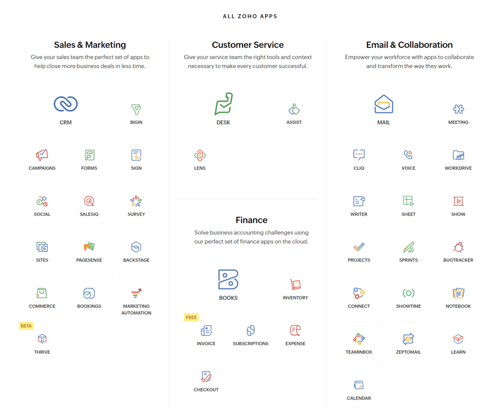 最重要的是,CRM 只是整个 Zoho 工具套件的一部分。该公司有 60 多个应用程序,如果您愿意,它们都可以以某种方式集成。因此,您可以按照团队需要的任何方式捆绑、添加和扩展 CRM。