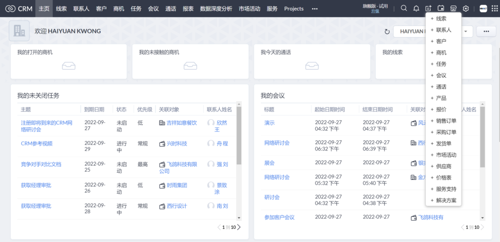 - 任务、通话及会议活动 ——你提出的东西,列出和过滤你选择的任何方式,并按类型(任务、通话及会议活动等)分隔。并按未关闭和已关闭进行分组划分。