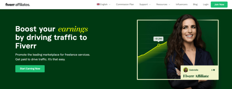 Fiverr是自由职业服务的主要市场之一。通过其联属网络营销计划,您可以获得报酬,以增加Fiverr的任何产品和服务的流量。